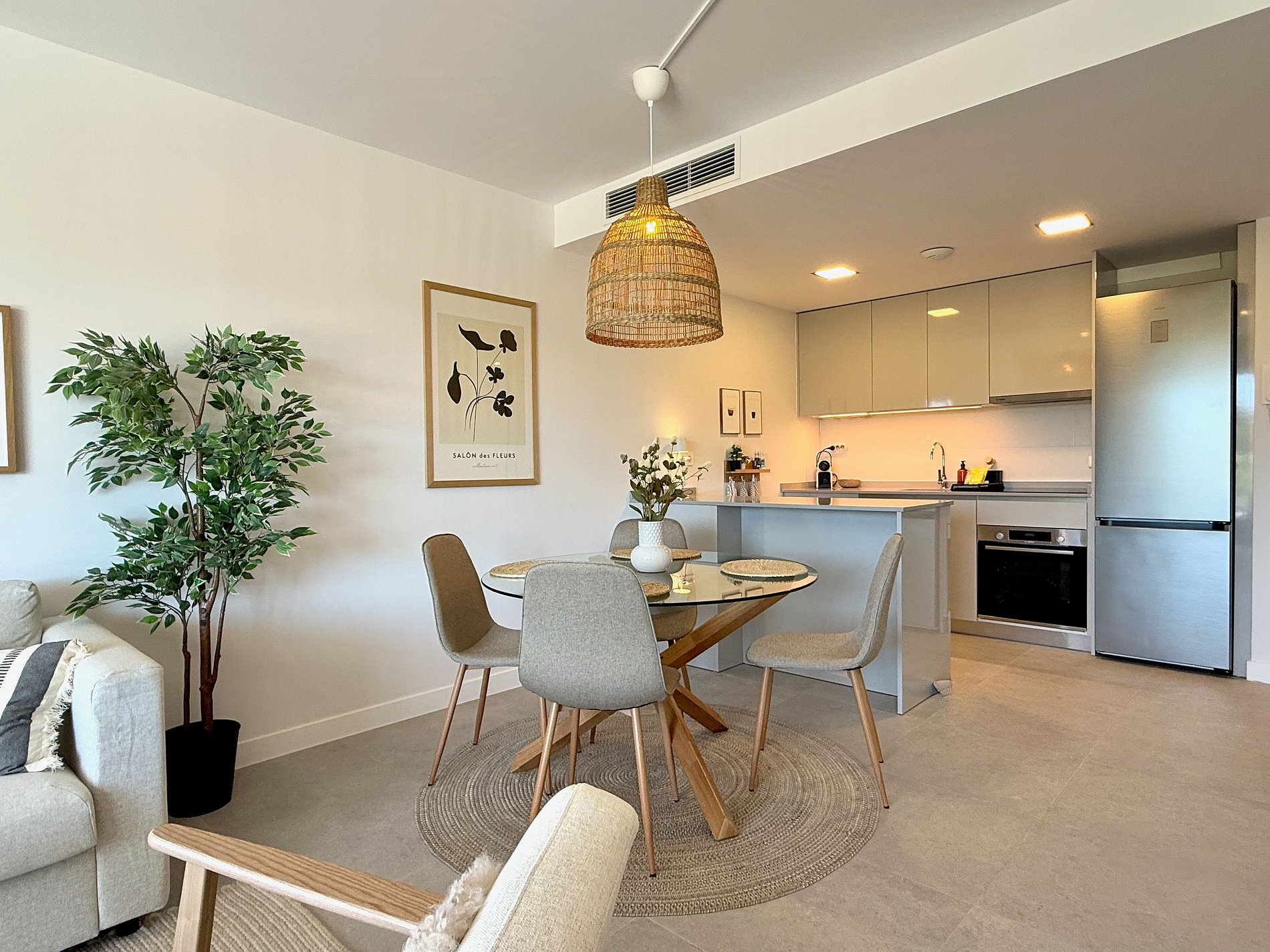 Escape to tranquility and comfort at Vitta Nature, a modern 2-bedroom apartment designed with Scandinavian style, offering a peaceful retreat in Mijas Costa. Perfect for up to 4 guests, this beautifully furnished apartment features stunning garden and sea views from the private balcony, a fully equipped kitchen, and a spacious living area