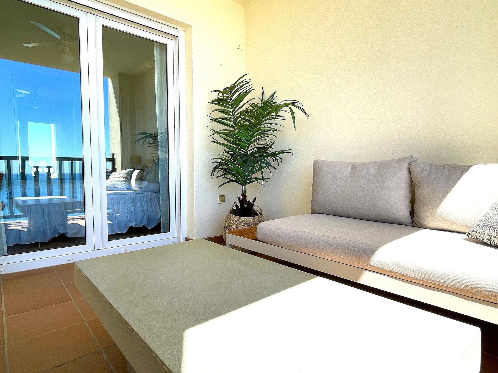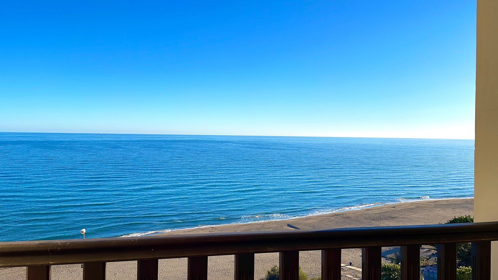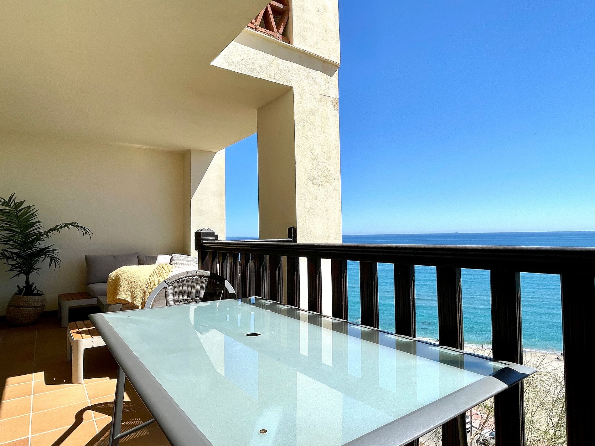 Impresionante apartamento con vistas directas al mar y balcón orientado al sur. Una terraza con mesa de comedor y una sala de estar con sofás. Esta comunidad ofrece una zona de piscina con vistas panorámicas al mar y una zona de césped a su alrededor. También una pequeña piscina de inmersión para niños. El apartamento está equipado con Aire acondicionado/calefacción, Wifi fibra y parking en el garaje.