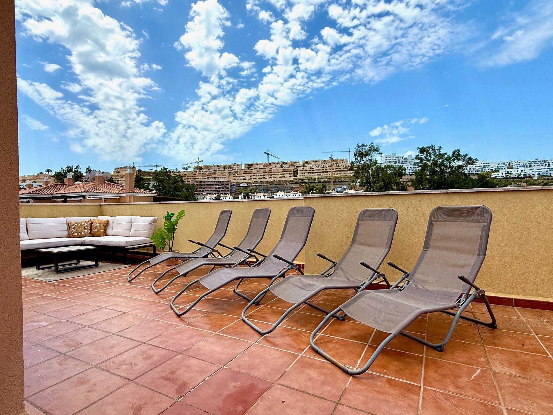 En la terraza encontrará una zona de sofás, barbacoa, zona de comedor y un par de tumbonas. Se puede acceder a la terraza tanto desde el salón como desde la cocina.