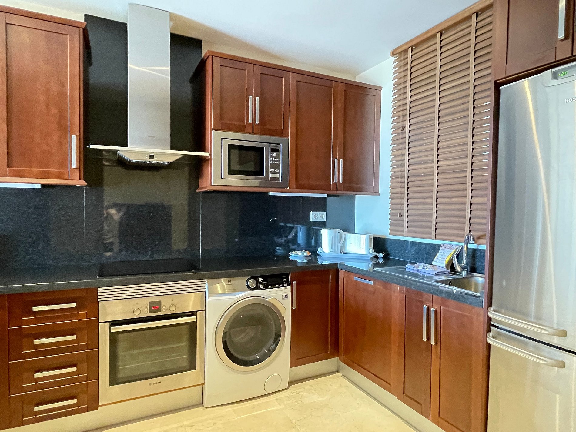 Spacious apartment, the pool was very quiet. The apartment had everything we needed