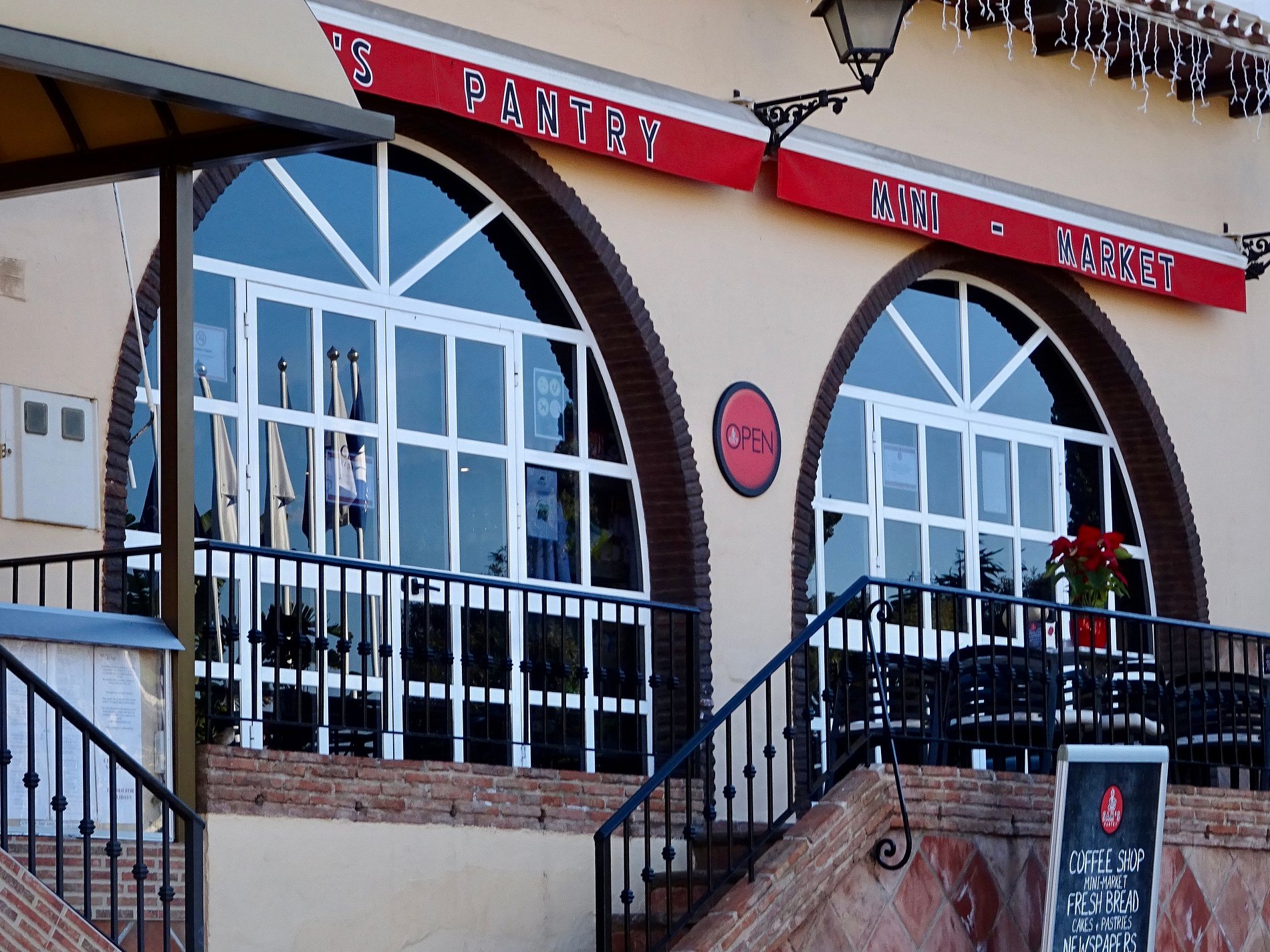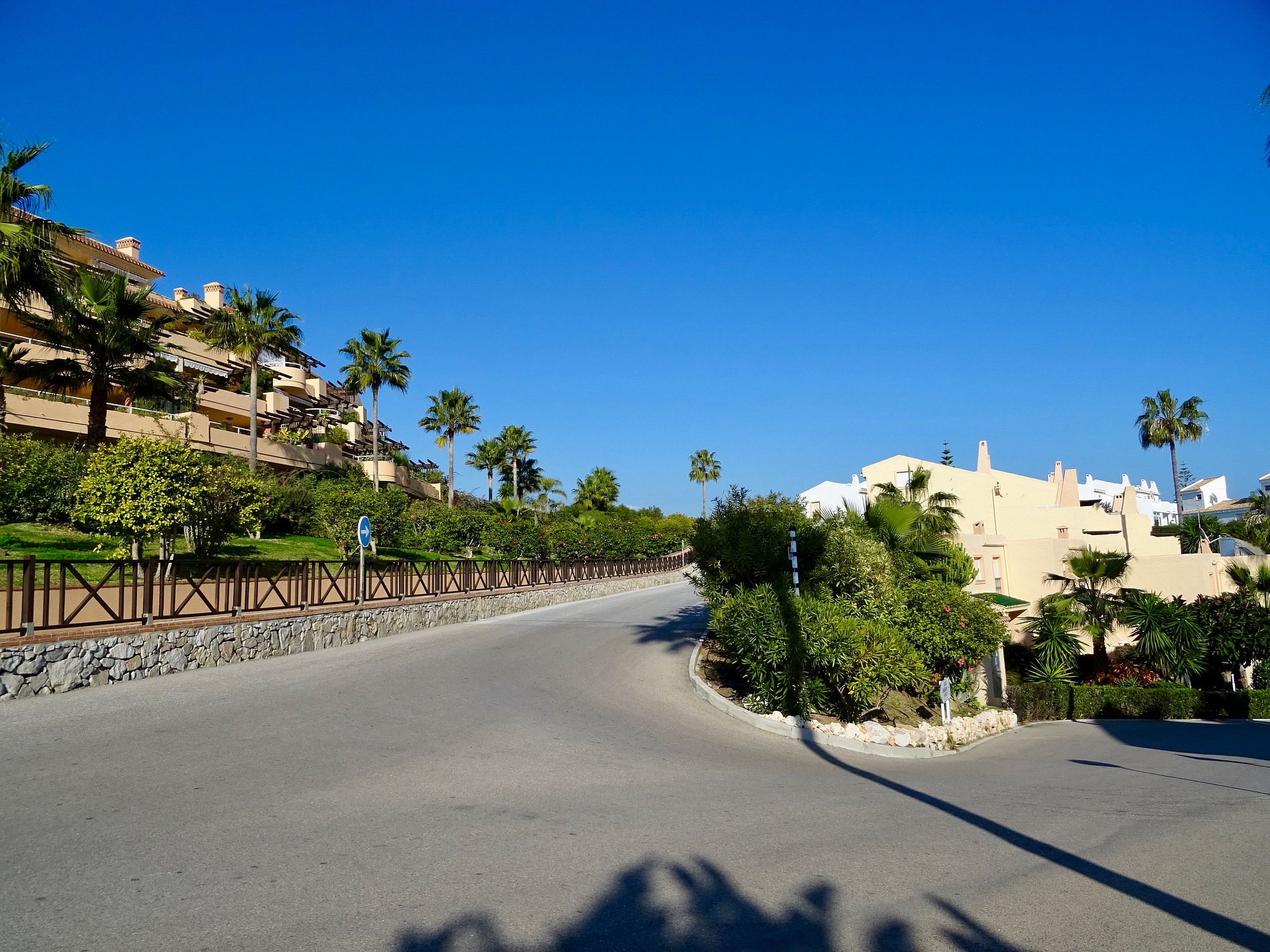 steep walk up and down to apparent. bit of a distance to walk to the shops and cafes. bit of a maze finding way round to shops and restaurants on the complex