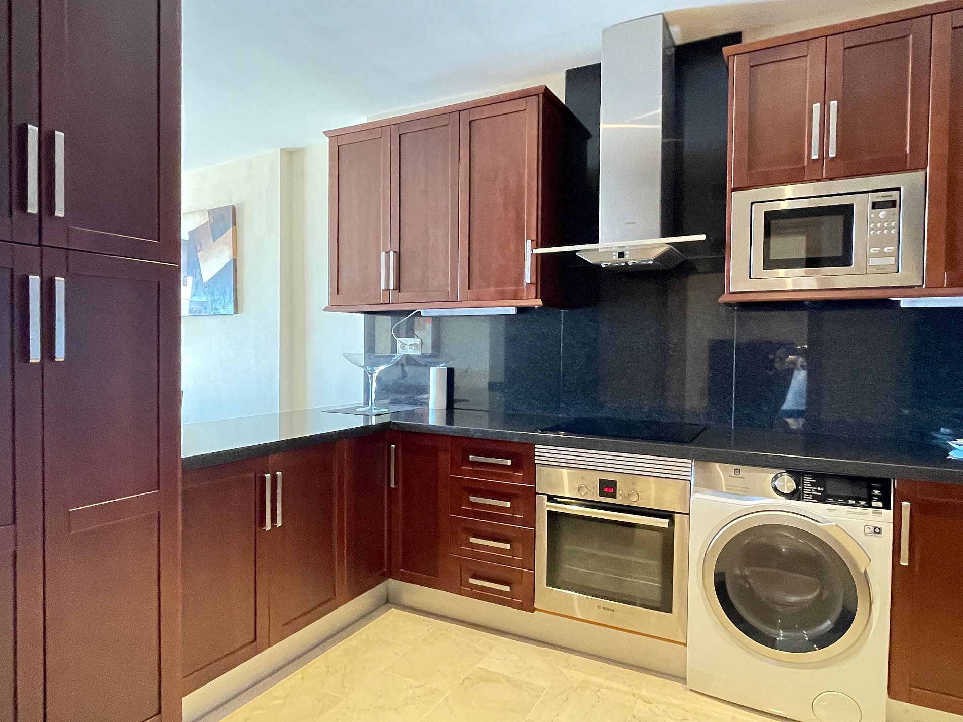 Spacious apartment, the pool was very quiet. The apartment had everything we needed