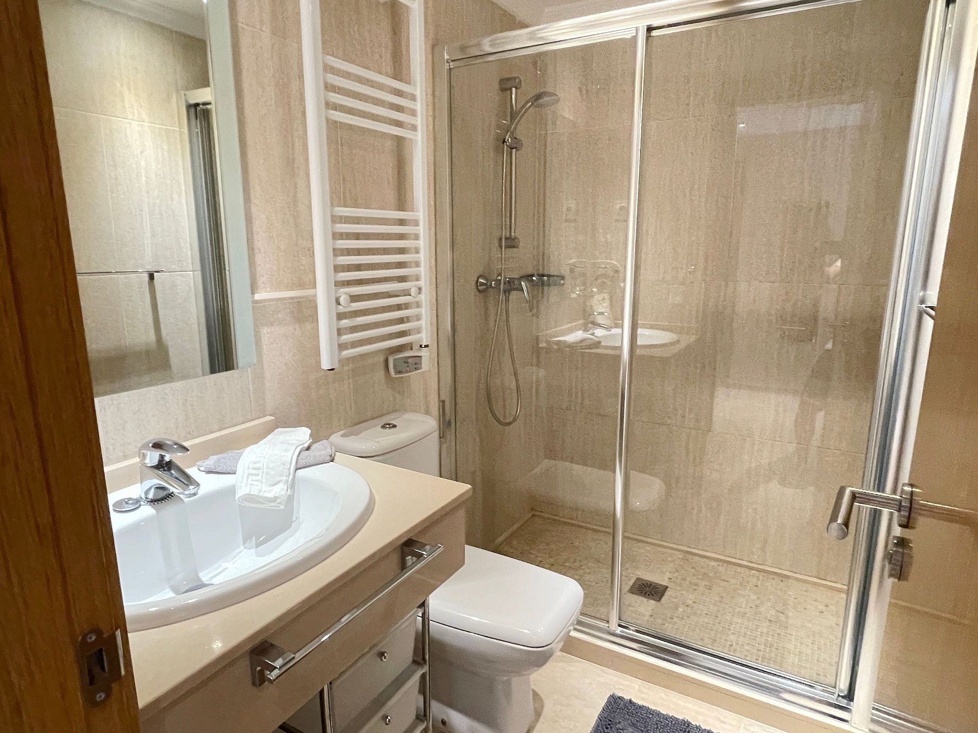 klein punt van aandacht is de strips in de douche deze werken niet waardoor water buiten de douche komt. slipgevaar.