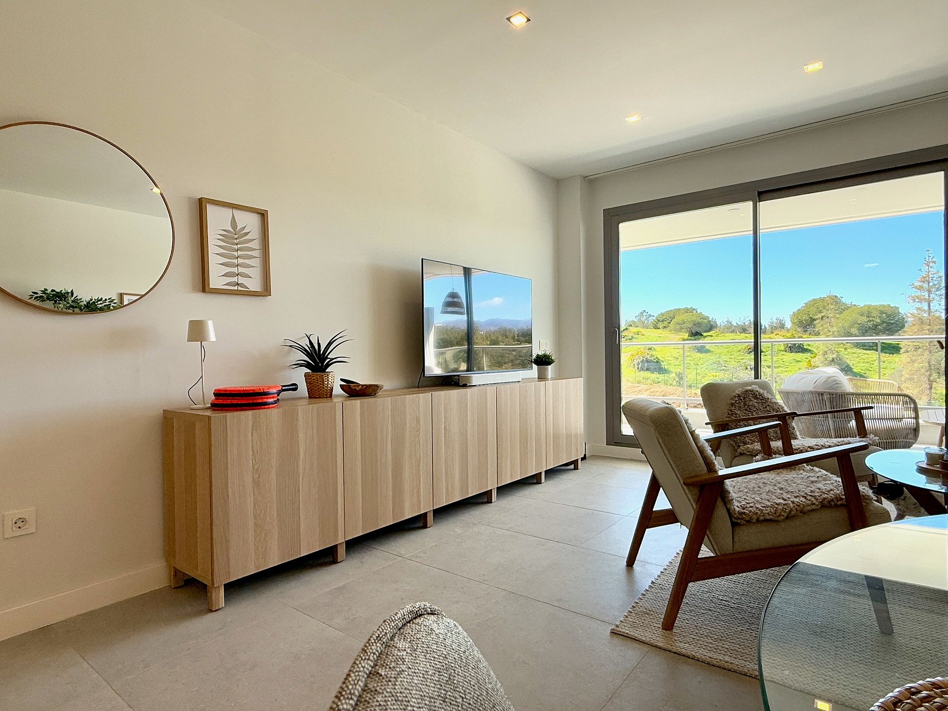Fuja para a tranquilidade e o conforto no Vitta Nature, um moderno apartamento de 2 quartos concebido num estilo escandinavo, que oferece um retiro tranquilo em Mijas Costa. Perfeito para até 4 pessoas, este apartamento lindamente mobilado oferece vistas deslumbrantes do jardim e do mar a partir da varanda privada, uma cozinha totalmente equipada e uma espaçosa área de estar.