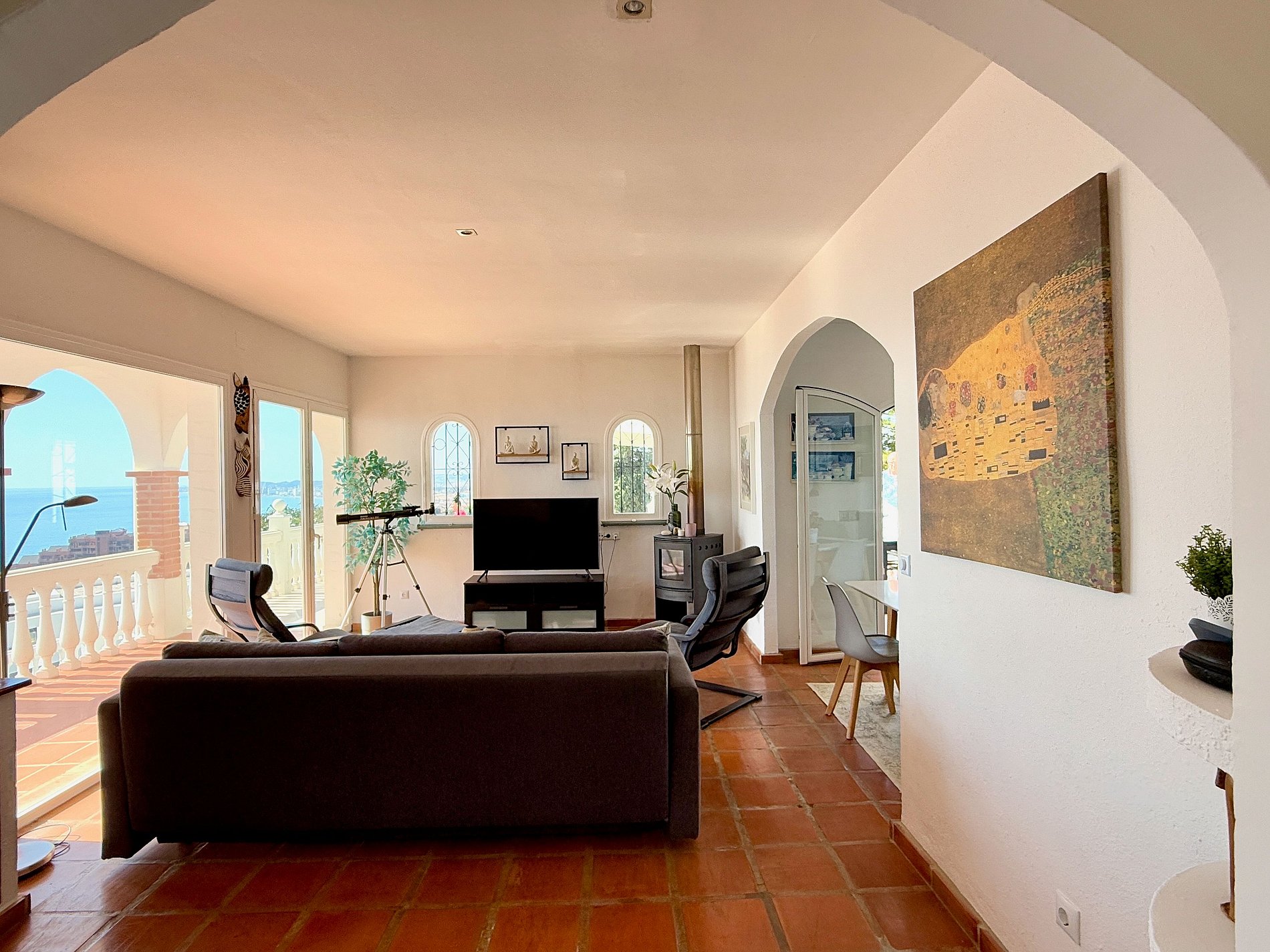 En privat pool med den bästa panoramautsikten över kustlinjen. Från denna villa kan du utforska Costa del Sol enklast med bil. 2 bilar kan parkeras innanför grindarna, privat och säkert. Det ligger inte långt från flygplatsen, ca 20 min med bil. En fantastisk strand i Carvajal kan nås på 5 minuter med bil.