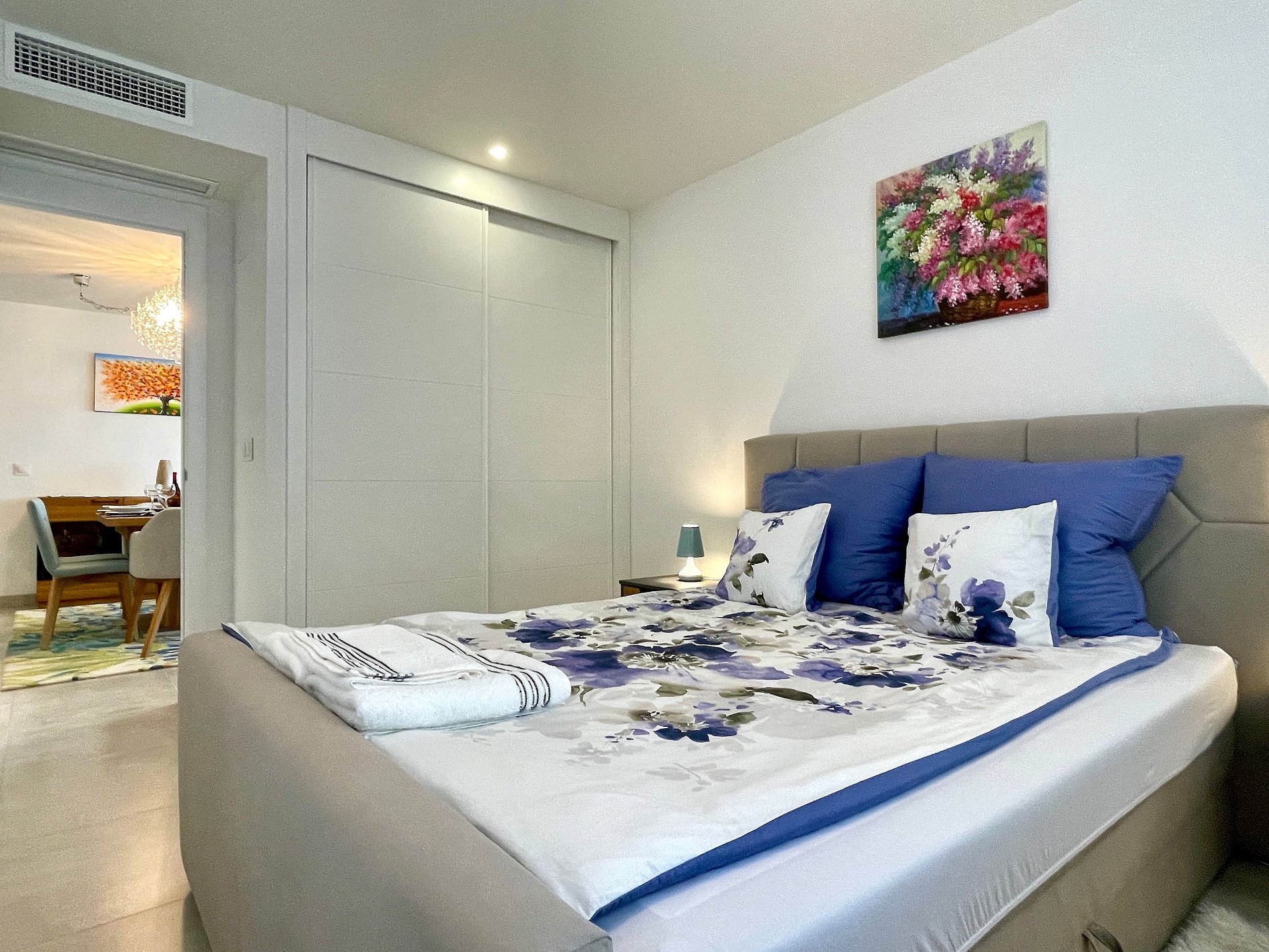 Gratis fiber wifi, 65 tums TV med kanaler på många olika språk, centralvärme och luftkonditionering, golvvärme i badrummen, kaffemaskin.