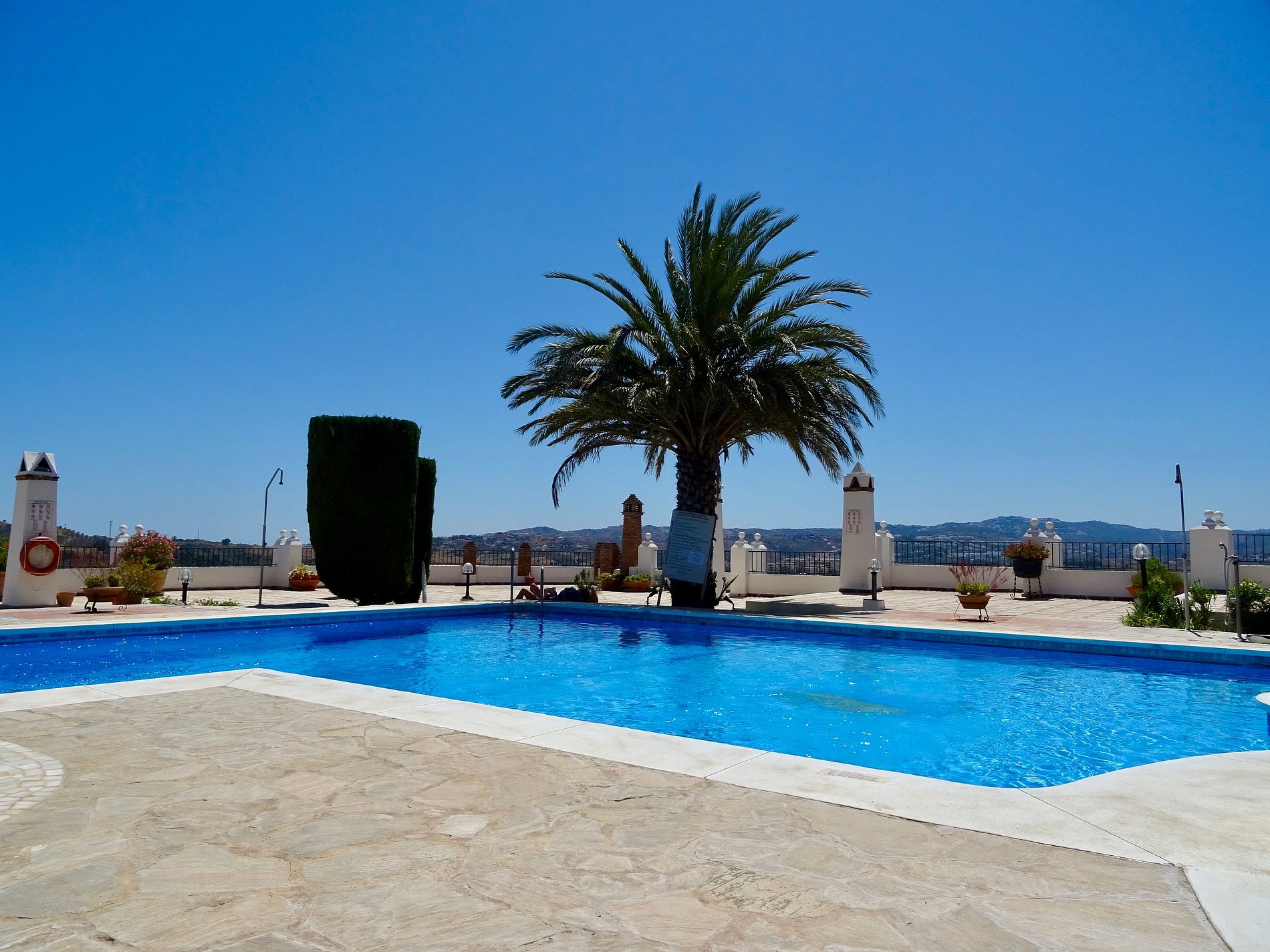 Emplacement idéal, bien exposé et très proche de la piscine et du solarium. Accessibilité parfaite aux merveilleux villages blancs. Rapport qualité prix imbattable. Juste un petit bémol à l’arrivée à 21.00h . Porte extérieure (du domaine entier) fermée et pas de clé disponible, puisque dans keybox sur la porte privée (30m plus loin), donc impossibilité d’entrer si un voisin complaisant ne vient pas vous ouvrir… Mais les jours suivants (avec les clés) plus aucun problème. Merci pour tout.